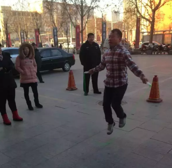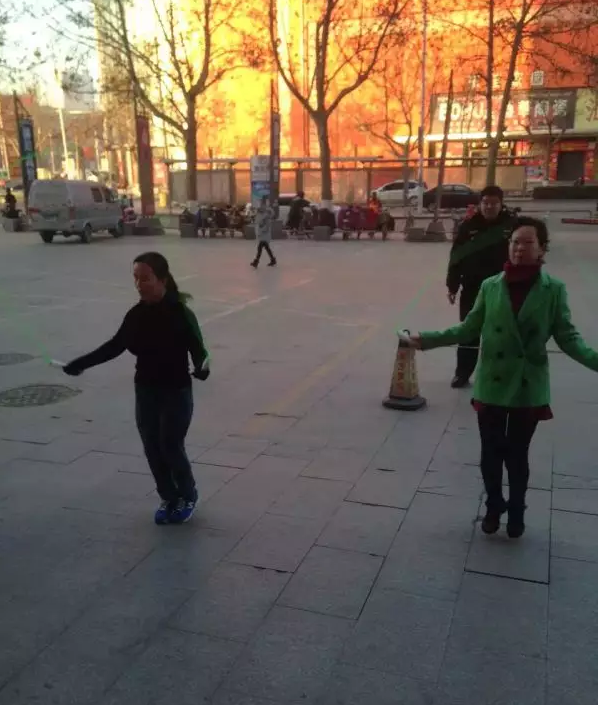 有的把牙齒咬得緊緊的,把臉蛋漲得像大紅蘋果,手中的短繩飛快地動著,劃成了一個個圓??;